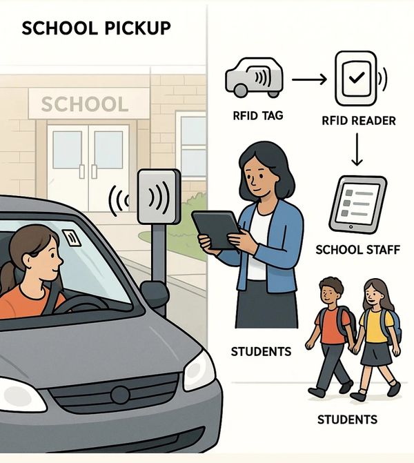 SmartPickup is an innovative system designed to streamline the often chaotic process of student dismissal at schools by leveraging RFID technology and a cloud-based software platform.